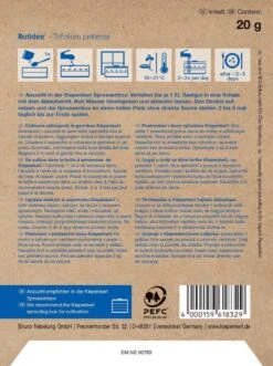 Dieser Rotklee hat einen sehr milden, feinen und nussigen Geschmack. 2- bis 3-Mal täglich bis zur Ernte spülen. Verzehrfertig in 3 bis 5 Tagen.