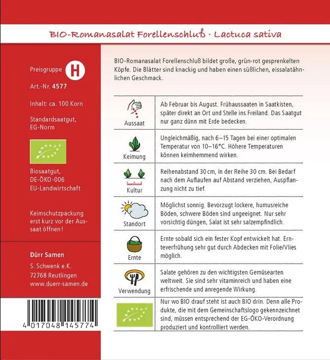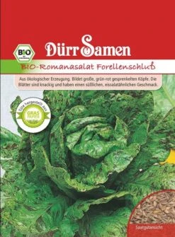 BIO-Romanasalat Forellenschluß bildet große, grün-rot gesprenkelten Köpfe.