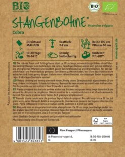 Die robuste BIO-Stangenbohne bildet circa 20 cm lange, grüne Hülsen, die nicht nur wunderbar schmecken, sondern auch fadenlos sind. Die Körner dieser Sorte sind schwarz. Die zarten, fleischigen Bohnen eignen sich besonders gut zum Einfrieren. Die leckeren Bohnen mit bester Qualität kannst Du sowohl im Garten als auch im Gewächshaus anbauen. Dort gedeihen die ertragreichen Pflanzen hervorragend. Sie sind resistent gegen das Bohnenmosaikvirus und gegen Brennflecken. Ab Juli und bis in den Oktober hinein kannst Du die köstliche Stangenbohne ernten.