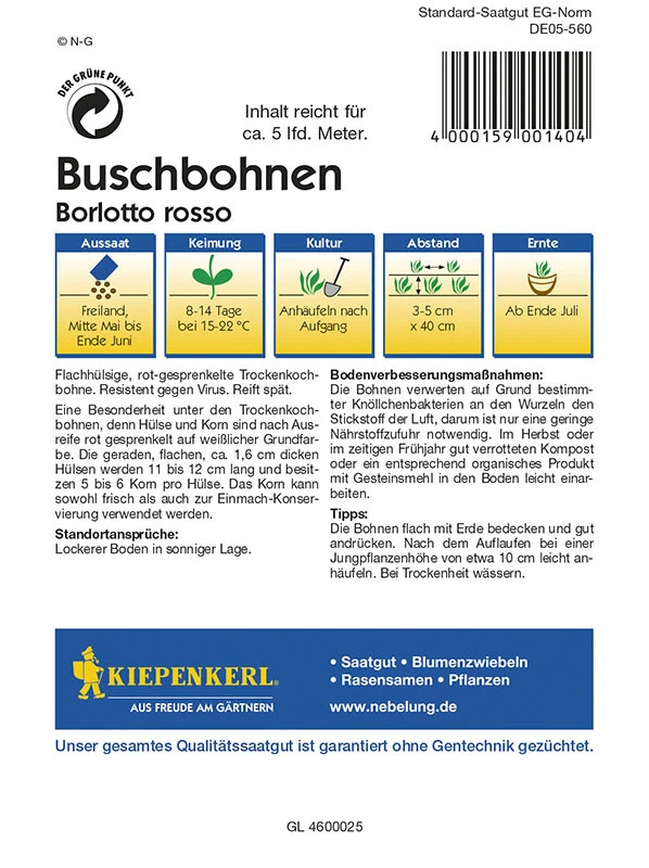 Kiepenkerl Gemüsesamen Bohnensamen Buschbohnen
