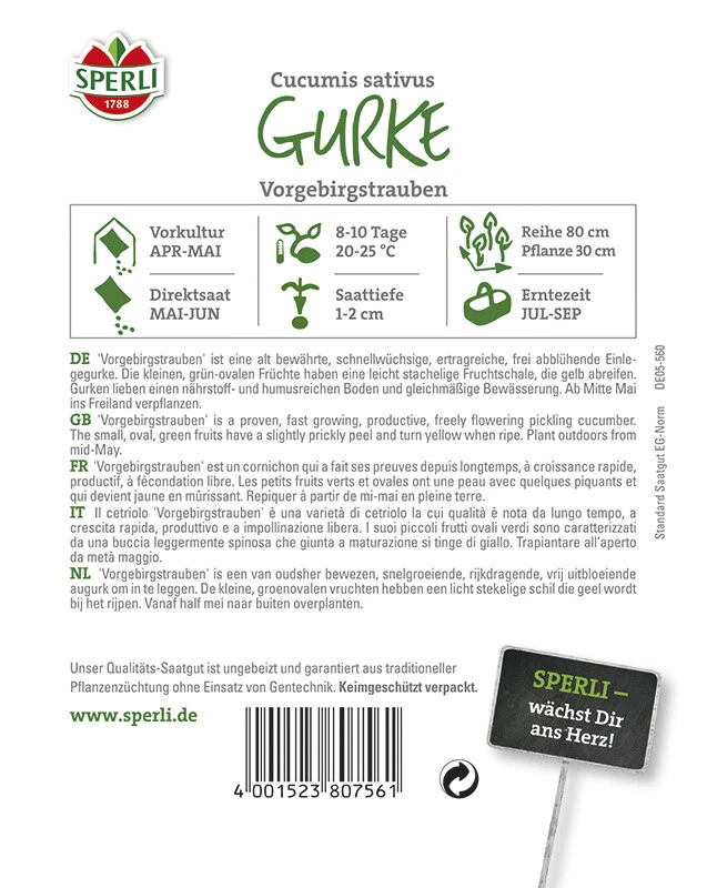 Sperli Gemüsesamen Gurkensamen Einlegegurken