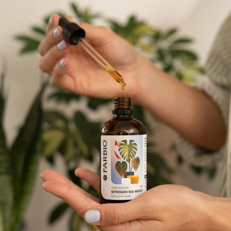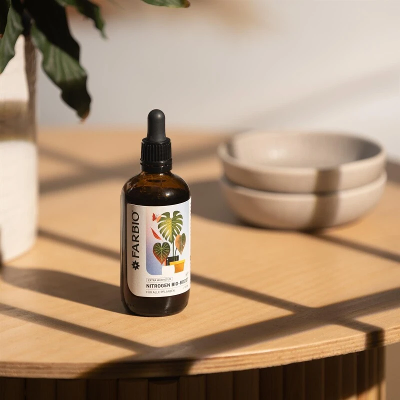 FARBIO® Nitrogen Bio-Boost unterstützt und stärkt Deine Pflanzen mit wichtigen Nährstoffen, welche essentiell für intensives Blattgrün und ein ausgeprägtes Wachstum aller Pflanzenteile sind. Unser Nährstoffkomplex erhöht die Mobilität aller Nährstoffe innerhalb deiner Pflanze, damit sie richtig aufgenommen werden können.