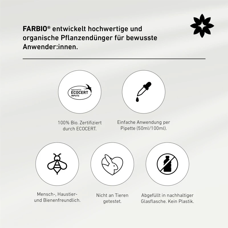 Alle FARBIO® Flüssigdünger werden mit Wasser gemischt. Eine 100ml Flasche FARBIO® Nitrogen Bio-Boost reicht für ca. 140 Anwendungen, gemischt mit 250ml Wasser. Dies entspricht ca. 35,5 Liter Wasser mit Dünger. Bei 500ml Wasser für 70 Anwendungen und bei 1L Wasser für 35 Anwendungen.