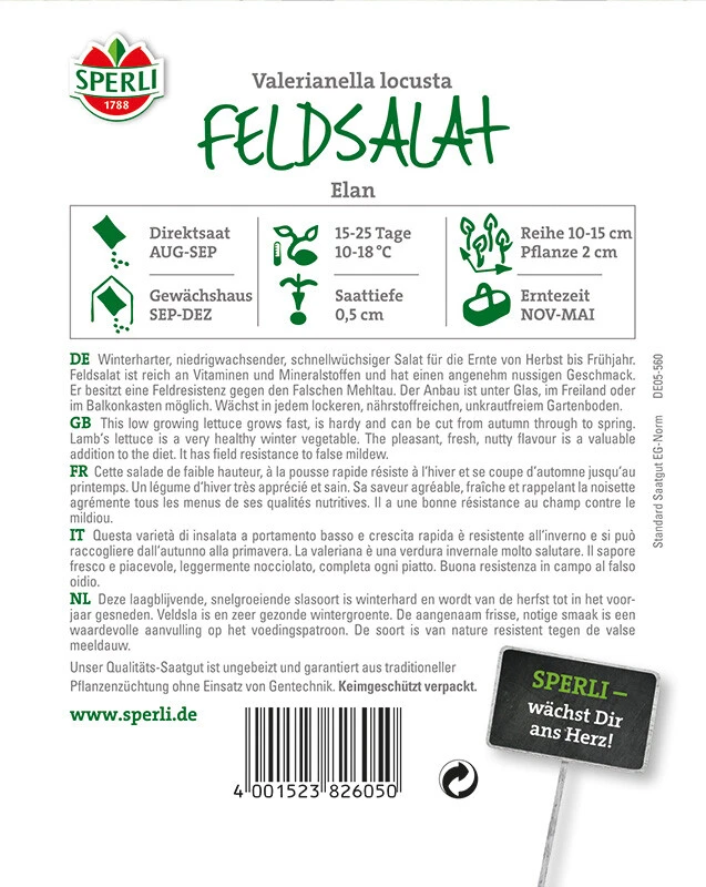Sperli Gemüsesamen Salatsamen Feldsalat