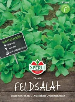 Ertragreich mit breiten, runden, dunkelgrünen Blättern wächst der Feldsalat ‚Palace‘ von SPERLI. Er ist frisch und nussig im Geschmack und strotzt vor Vitaminen und Mineralstoffen. ‚Palace‘ ist eine Spitzensorte für den ganzjährigen Anbau im Gewächshaus sowie für den Sommeranbau im Freiland. Die genügsamen Pflanzen wachsen in jedem Gartenboden, der locker, nährstoffreich und unkrautfrei ist. Wird ‚Palace‘ im Gewächshaus angebaut, ist eine ganzjährige Ernte möglich. Im Falle einer Freilandkultur erstreckt sich die Erntezeit von September bis März.