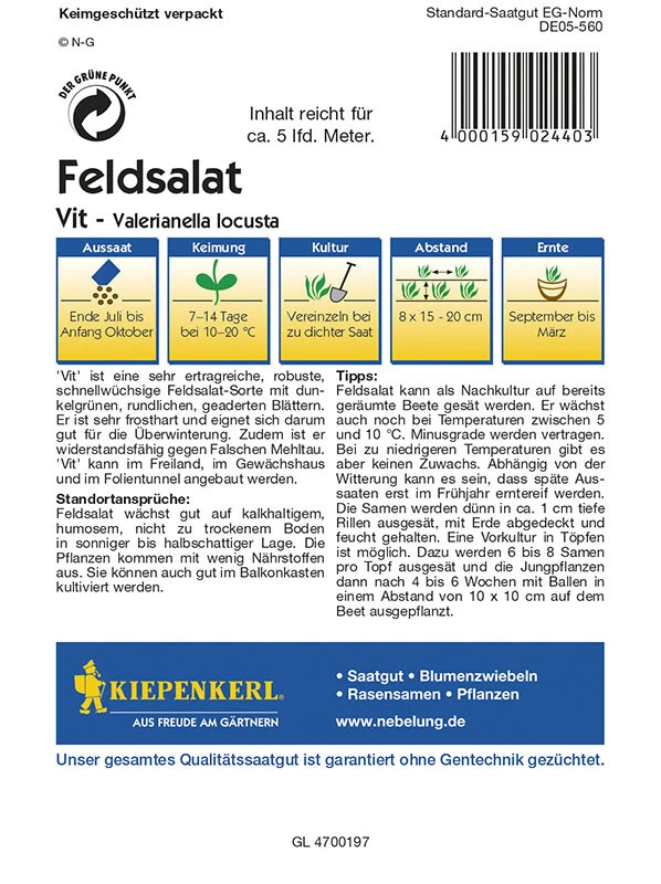 Kiepenkerl Gemüsesamen Salatsamen Feldsalat