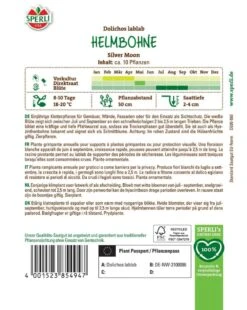 Die Helmbohne ‚Silver Moon‘ ist eine einjährige Kletterpflanze für Gemäuer und Wände oder als Sichtschutz. Sie ist auch als Hyazinthenbohne bekannt und eignet sich als Schnittblume. Die weißen Blüten zeigen sich zwischen Juli und September an den schnellwüchsigen und 2 bis 2,5 m langen Trieben. ‚Silver Moon‘ bildet eine kräftige und tiefe Pfahlwurzel aus, sodass sie Trockenheitsphasen gut übersteht. Während die Vorkultur von Februar bis April erfolgt, ist die Direktsaat nur im Mai möglich. Die Hülsen dieser für Vögel sehr attraktiven Zierpflanze können geerntet und verzehrt werden, doch Vorsicht: Im rohen Zustand sind sie giftig und nur gekocht genießbar. Dazu muss das Kochwasser mehrmals ausgetauscht werden.