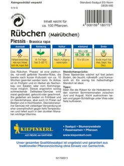 Das Rübchen ‚Plessis‘ ist eine plattrunde, rot-weiß gefärbte Navet-Rübe der Profi-Line, die sich wunderbar für den Anbau im Herbst und Frühjahr eignet. Bereits nach einer kurzen Kulturzeit von ca. 10 Wochen kann die F1-Hybride zwischen April und Dezember geerntet werden. Aus diesem Grund ist die Rübe besonders für die Nachkultur von Salaten und Sommergemüse im Herbst geeignet. Die kalorienarme Speiserübe ist nämlich eher unempfindlich gegen tiefe Temperaturen und liefert auch in den dunklen Monaten wichtige Vitamine. Ob im Hochbeet oder im Kübel, die ‚Plessis‘ lässt sich entsprechend mühelos kultivieren. Dieses angenehm würzig schmeckende Herbstgemüse wird sehr vielseitig verwendet. Am häufigsten werden die mehrfarbigen Rüben gedünstet, gekocht oder geschmort.