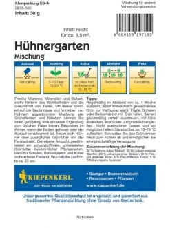 Spezielle Grünfutter-Mischung für Hühner. Ganzjährige Kultur auf der Fensterbank möglich. Frische Ergänzung zu Körnerfutter. Wuchshöhe ca. 20 cm.