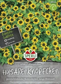 Das Husarenknöpfchen ‚SPERLI’s Knöpfchen‘ zählt wegen seiner Blütenfülle, des gleichmäßig niedrigen, flächigen Wuchses und wegen seiner Unempfindlichkeit gegen Witterungseinflüsse zu den beliebtesten Balkon- und Rabattenblumen. Gerne kannst Du es aber auch in Einfassungen oder Schalen kultivieren. Es liebt sonnige bis halbschattige Plätze, mag aber keine Staunässe. Mit einer Wuchshöhe von 15 bis 20 cm ist das Husarenknöpfchen ein Polster bildender Bodendecker. Die Blütezeit der einjährigen Pflanze erstreckt sich von Mai bis Oktober.