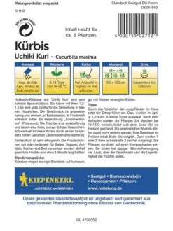 Der Kürbis ‚Uchiki Kuri‘ ist eine aufsehenerregende japanische Züchtung, die sich durch einen besonders angenehmen, kernigen Geschmack auszeichnet, der an Esskastanien erinnert. Die Früchte bilden sich zahlreich an der Profi-Line-Pflanze und erreichen bis zu ihrer Ernte im Herbst ein Gewicht von bis zu 1,5 kg. Ihre Form erinnert an eine Zwiebel, die aber eine feste, orangene Schale besitzt. Die F1-Hybride eignet sich überdies ausgezeichnet für die Gefäßkultur. Nicht nur geschmacklich, sondern auch in seiner Zusammensetzung ist der Hokkaido-Kürbis sehr wertvoll. Er enthält durch seine vielen Carotinoide ein hohes Maß an Provitamin A. Roh und verarbeitet in Salaten, Suppen, Kuchen, Aufläufen oder Brot ist ‚Uchiki Kuri‘ ein Geschmackserlebnis. Reif geerntet können die Kürbisse etwa 3 Monate eingelagert werden.