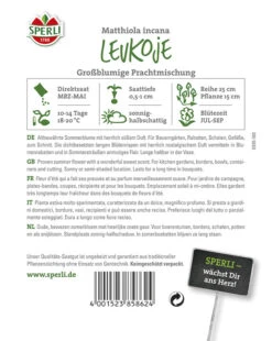 Levkojen in Hülle und Fülle! Die „Großblumige Prachtmischung“ von SPERLI enthält verschiedenfarbige Varianten dieser altbewährten, herrlich süß duftenden Sommerblume mit anmutigem Flair. Sie ist für Bauerngärten, Rabatten, Schalen und Gefäße ideal geeignet und steht von Juli bis September in traumhafter Blüte. Gerne kannst Du sie aber auch für den Schnitt verwenden. Die urigen Sträuße sind lange haltbar in der Vase. Levkojen gedeihen prächtig an einem sonnigen bis halbschattigen Standort und erreichen eine Wuchshöhe von ca. 60 cm.