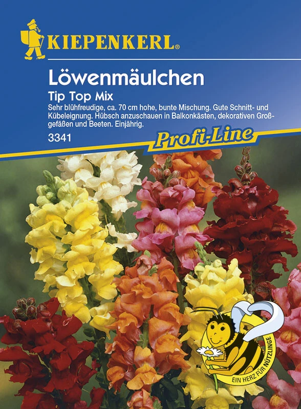 Eine erstklassige, einjährige Bienen- und Insektenweide in überwiegend angenehm warmen Farbtönen. Farbenprächtige Blütenmischung mit imposanten Blütenähren an insgesamt 70 cm hohen Pflanzen. Sie bringen Farbe in jeden Bauerngarten, jede Blumenrabatte und jedes Staudenbeet. Sehr bewährt und beliebt ist Löwenmäulchen als haltbare Schnittblume für die Vase. In Trögen, Töpfen und Balkonkästen macht sie ebenfalls eine gute Figur. Auch nach häufiger Blütenernte erzeugen die Pflanzen den ganzen Sommer über immer wieder neue Blütenähren. Es gibt eine Vielzahl an unterschiedlichen Löwenmäulchen-Züchtungen, weil diese Sommerblume so beliebt ist.