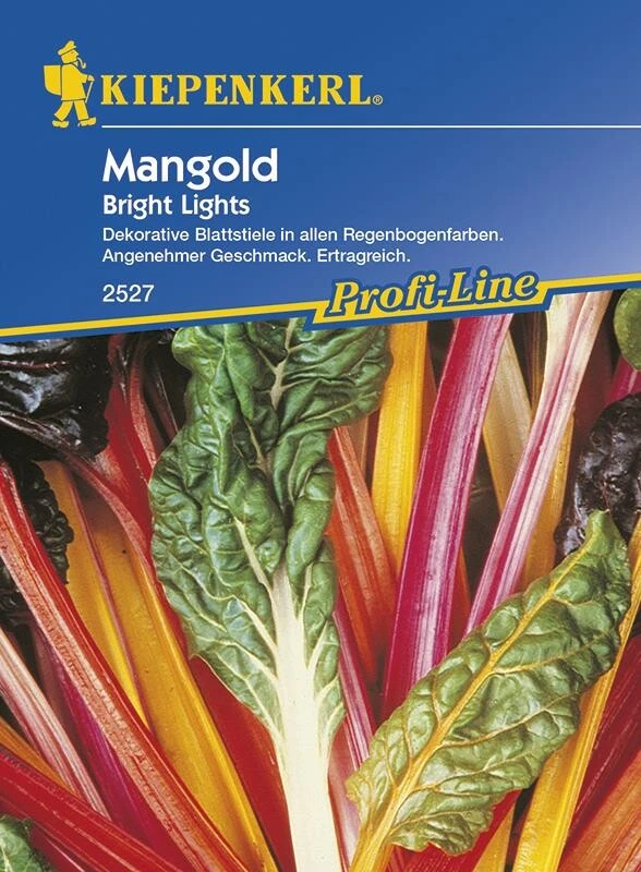 Seine außergewöhnliche Farbenpracht macht den Mangold ‚Bright Lights‘ zu einem optischen Highlight, das in Gruppen und Reihen gepflanzt wunderbar zur Geltung kommt. Leuchtende Rot-, Orange-, Gelb- und Weißtöne zieren Ihre Beete, wenn Sie sich für diese dekorative Profi-Line Züchtung entscheiden. Die großen Blätter mit den kräftigen Stielen haben einen angenehmen Geschmack und können wie Spinat zubereitet werden. Geerntet wird der ergiebige ‚Bright Lights‘ zwischen Juni und Oktober. Die vitaminreiche F1-Hybride macht in Gartenbeeten, Beeteinfassungen, zwischen Staudenbeeten und in Schalen eine gute Figur und setzt ungewöhnliche Akzente. Besonders intensiv entwickeln sich die Farben des Mangolds gegen Ende des Gartenjahres. Leichte Fröste kann der Pflanze nichts anhaben, aber verstärkt den jeweiligen Farbton.