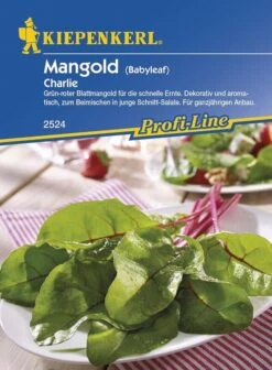 Der Profi-Line Mangold ‚Charlie‘ vereint ein herzhaftes und feines Aroma mit gesunden Inhaltsstoffen. Seine glänzend grünen Blätter und die intensiv rote Farbe an den Stängeln und Blattnerven verleihen dem Gemüse ein überaus dekoratives Aussehen. Diese F1-Hybride ist speziell für die ‚Baby-Leaf‘-Ernte gezüchtet worden. Dies bedeutet, dass die Pflänzchen schon jung geerntet werden können, bei einer Höhe von 10-15 cm. Zu diesem Zeitpunkt sind die Blätter, die 2-3 cm über dem Boden abgeschnitten werden, besonders zart. Die Kulturdauer des Blatt- und Schnittmangolds ist kurz, sodass er auch als schnelle Zwischenkultur ausgesät und zwischen Mai und Oktober geerntet werden kann. Ob im Balkonkasten, Beet oder ungeheizten Gewächshaus – ‚Charlie‘ wächst ganzjährig ohne Probleme. Sein sanftes Aroma und die frischen Farben sind eine Bereicherung für jeden knackigen Salat. Doch auch als gedünstetes Gemüse ist dieser Mangold ausgesprochen lecker.