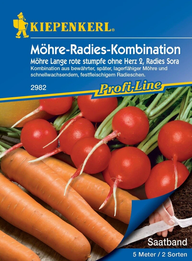 Möhre-Radieschen-Kombination, 5 Meter Saatband, Schnellwachsend, Gut Lagerfähig, Kiepenkerl