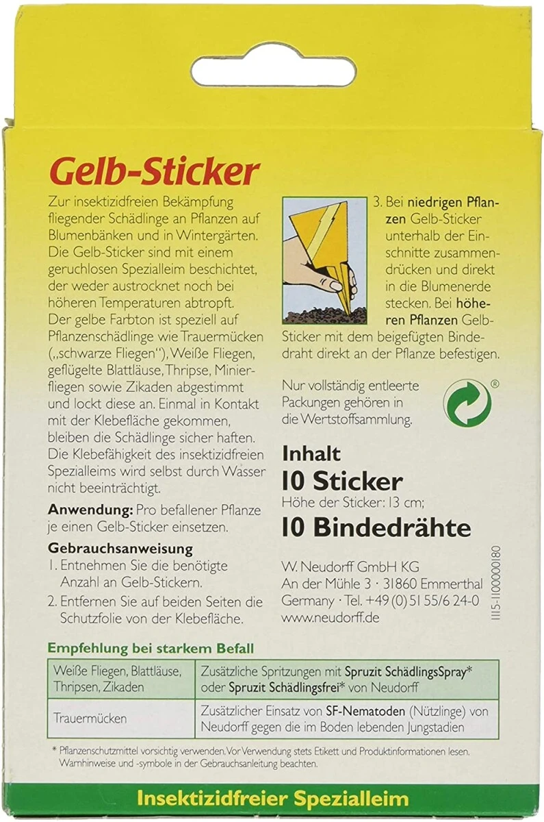 Anwendung: je 1 Gelb-Sticker pro befallener Pflanze direkt in die Blumenerde stecken