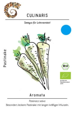 Die Pastinake Aromata ist eine schlanke, aromatische Sorte mit butterfarbenen Wurzeln. Sie ist sanft im Geschmack und sehr fein in der Konsistenz und daher für den Rohverzehr gut geeignet.