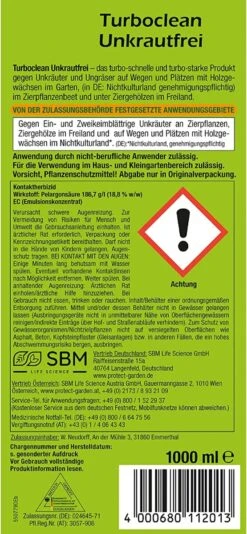 - vielseitig – Turboclean Unkrautfrei überzeugt durch ein breites Wirkungsspektrum und wirkt effektiv und schnell auch gegen hartnäckige Unkräuter wie Giersch und Ackerschachtelhalm sowie gegen Algen und Moose im Beet