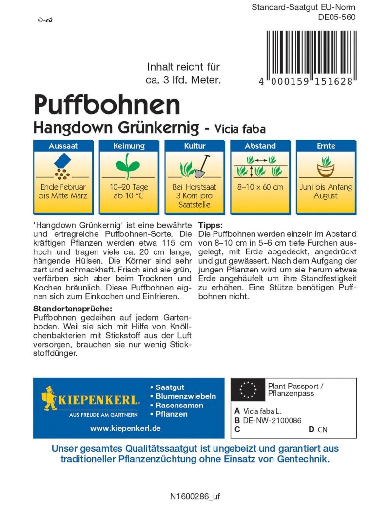 Kiepenkerl Gemüsesamen Bohnensamen Puffbohnen