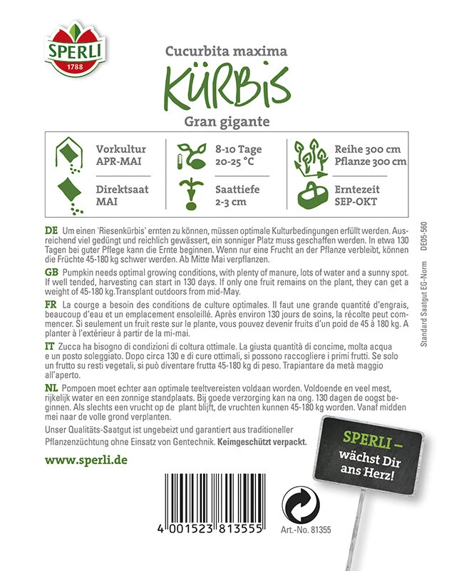 Sperli Gemüsesamen Kürbissamen