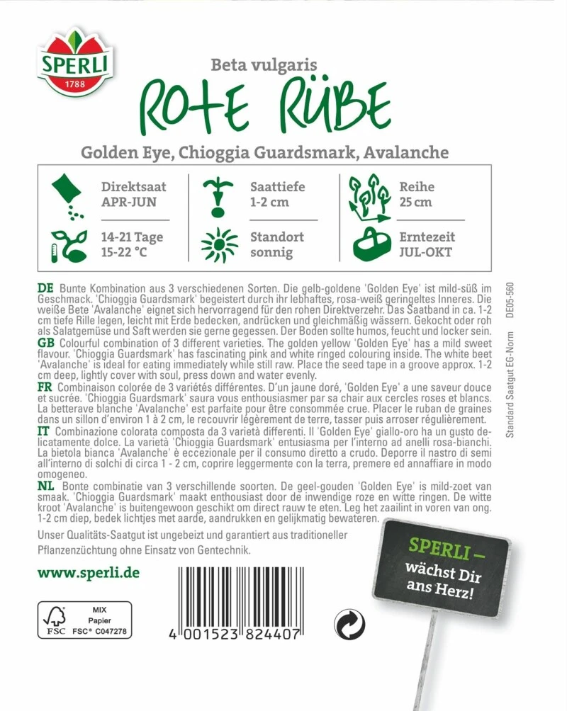 Rote Rüben Samen Golden Eye, Chioggia Guardsmark, Avalanche, Saatband