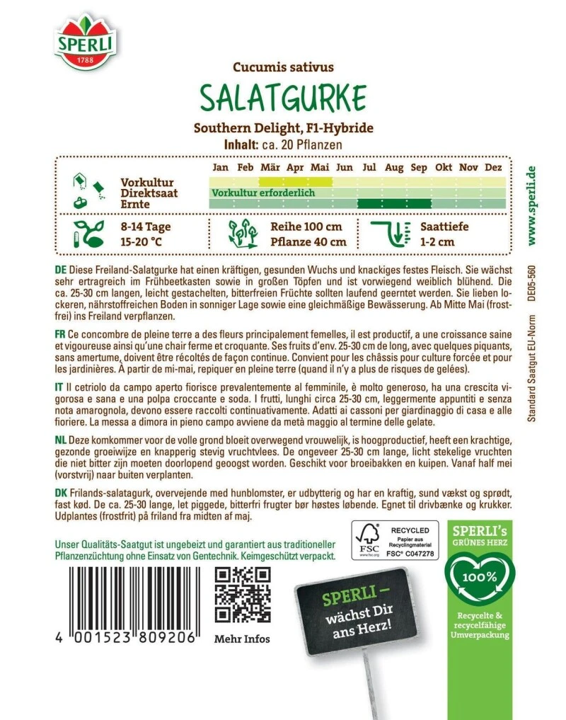 Mach Platz in Deinem Garten für ‚Southern Delight‘! Die Salatgurke hat ein kraftvolles Wachstum und steht fest im Beet. Ganz gleich, ob in Frühbeetkästen oder in großen Töpfen, kannst Du die Gurken sääen.