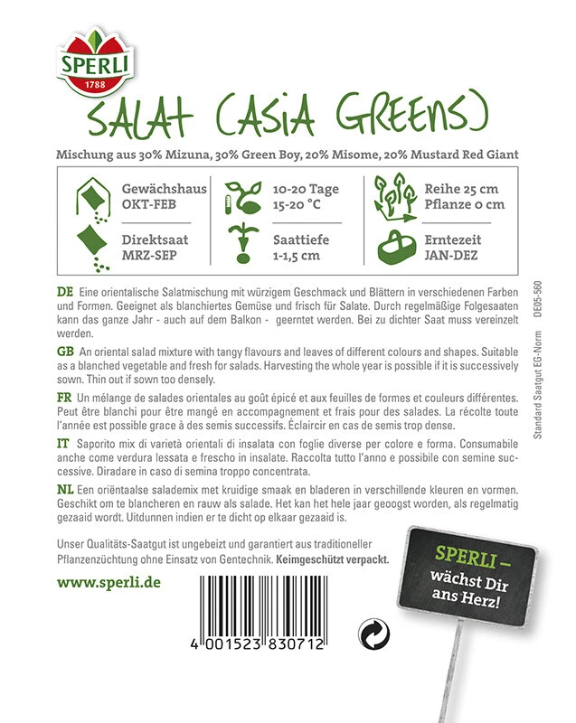 Sperli Gemüsesamen Salatsamen Asia-Salat