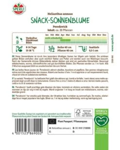 Die Snack-Sonnenblume ‚Peredovick‘ wird bis zu 1 m hoch. Sie trägt schöne gelbe Blüten und eignet sich als Schnittblume. Die Blüten enthalten reichlich Nektar und Pollen und werden daher gerne von Nützlingen wie Hummeln, Bienen und Schmetterlingen besucht. Aufgrund der ölhaltigen Samen ist die Sonnenblume besonders bei Vögeln sehr beliebt. Nach der Samenreife können die Blütenstände stehen bleiben und als wertvolles Körnerfutter dienen. Die Aussaat von ‚Peredovick` erfolgt im April und Mai. Es wird keine Vorkultur benötigt. Die Sonnenblume blüht bis in die Herbstmonate.