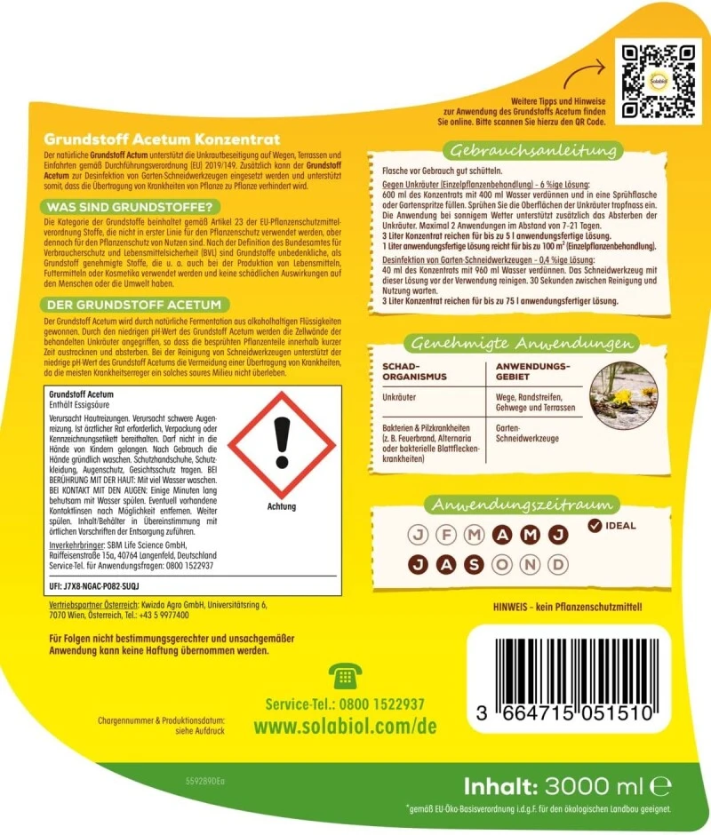 - Der Grundstoff Acetum ist 100 % natürlich, unbedenklich für Mensch und Tier und nicht bienengefährlich.