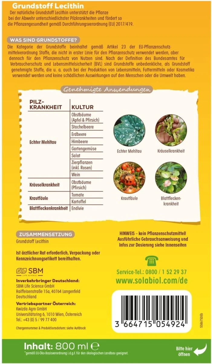 Solabiol Grundstoff Lecithin, natürliche Abwehr von Pilzkrankheiten an Pflanzen, 800 ml Konzentrat