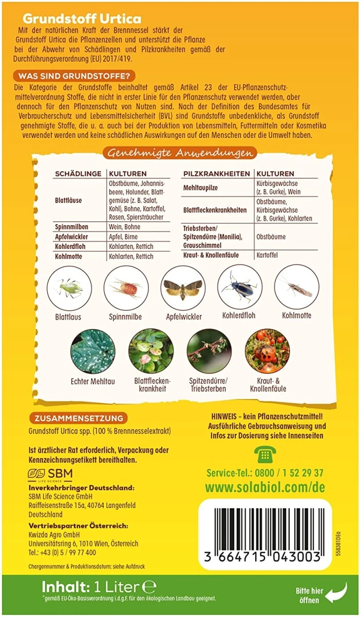 Der Solabiol Grundstoff Urtica aktiviert das natürliche Wachstum von Nutz- und Zierpflanzen und unterstützt die Abwehr von Schadinsekten, Milben und Pilzkrankheiten. Egal ob Obst, Gemüse oder Zierpflanzen – mit Grundstoffen helfen Sie Ihren Pflanzen dabei, Schädlinge und Pilzkrankheiten abzuwehren und fördern so ganz natürlich die Pflanzengesundheit.