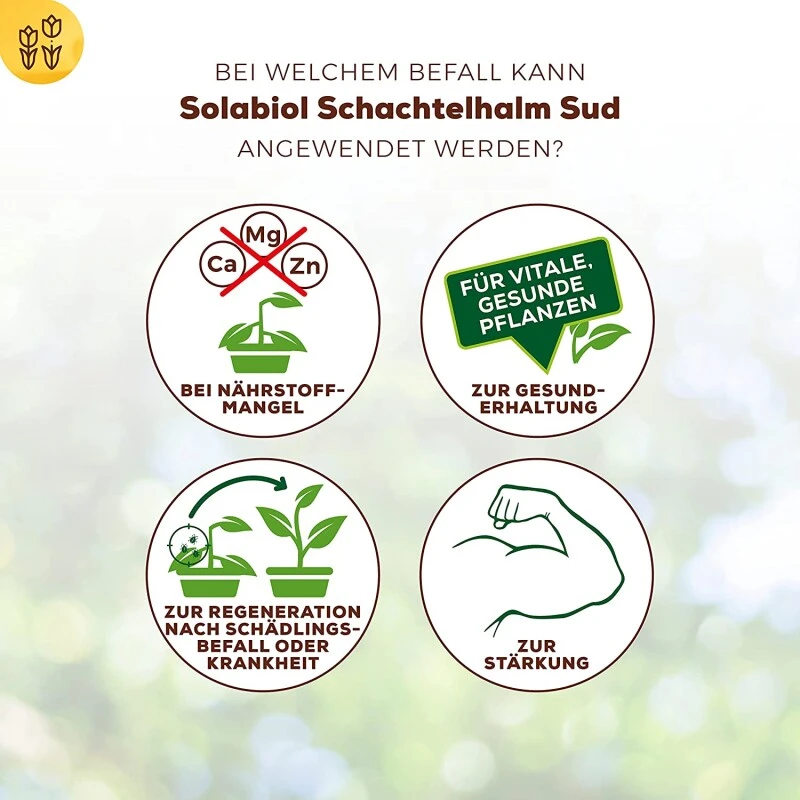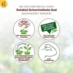 Der Solabiol Schachtelhalm Sud beschleunigt aufgrund seines hohen Anteils an Kieselsäure und Silikaten die Regeneration und Zellerneuerung von Pflanzen.
