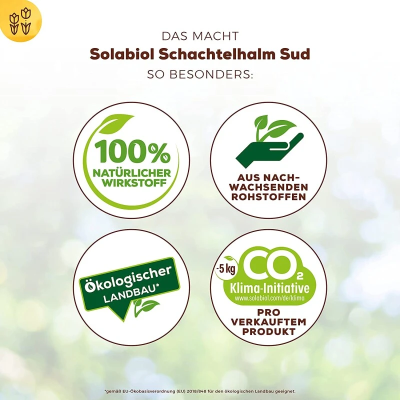 - biologisch – Solabiol Schachtelhalm Sud besteht zu 100% aus fermentiertem Schachtelhalm und ist für den biologischen Landbau zugelassen.