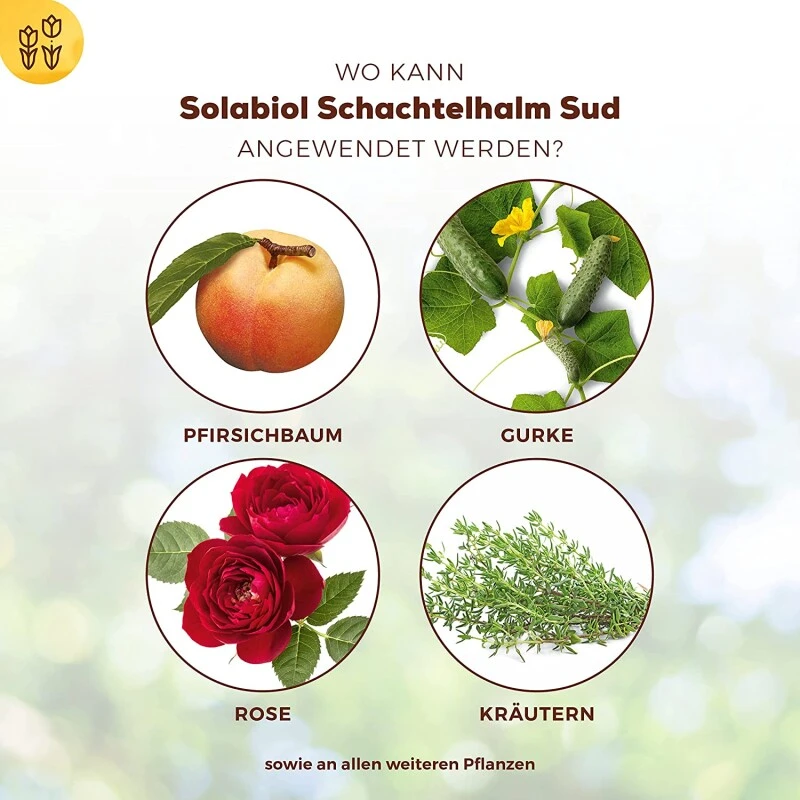 - vorbeugend und regenerierend – der biologische Schachtelhalm Sud von Solabiol eignet sich ideal zur Stärkung und Kräftigung pilzanfälliger Pflanzen wie Zierpflanzen, Obst und Gemüse