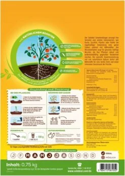 - Die spezielle Zusammensetzung mit viel natürlichem Kalium liefert alle Nährstoffe für eine reiche Ernte und einen intensiven Geschmack der Früchte.