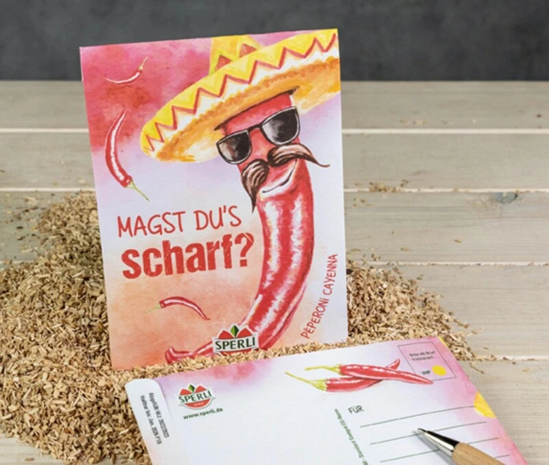 Diese Saatgut-Grüße per Post sehen nicht nur gut aus, sondern schmecken auch! Jeder freut sich über einen lieben Kartengruß, vor allem, wenn würzige Peperoni darin steckt. Schreibe ein paar nette Worte auf, die Adresse und eine Briefmarke dürfen nicht fehlen und schon geht es ab zur Post. Verschenke spätere Geschmacksfreuden! Die langen, schlanken, nach rot abreifenden Peperoni können getrocknet oder gemahlen werden und eignen sich ideal zum Kochen oder verfeinern. Die Früchte können zwischen August und Oktober geerntet werden.
