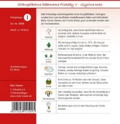 Saattiefe 3 – 5 cm. Die Keimung erfolgt erst ab ca. 10°C, die Aussaat sollte nicht in nassen, kalten Böden erfolgen.