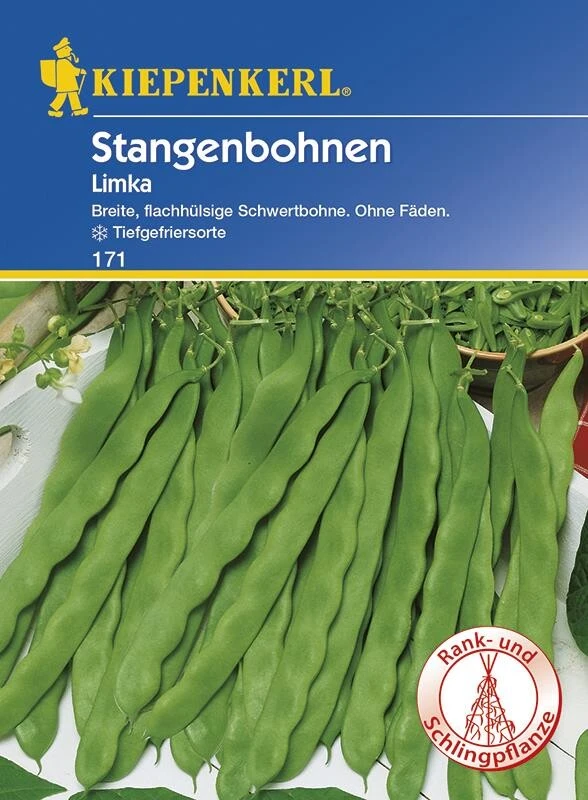 Eine Schwertbohnensorte für den mittelfrühen Anbau ist die Stangenbohne ‚Limka‘. Sie entwickelt hellgrün glänzende Hülsen, die eine Länge von 22 bis 24 cm und eine Breite von 2 cm erreichen. Sie wachsen flach und fadenlos und enthalten weiße Samen. Nach der Ernte bleiben sie lange zart und eignen sich sehr gut für die tiefgefrorene Lagerung. Die Pflanzen weisen eine natürliche Resistenz gegen das Bohnenmosaikvirus auf und sind vom Typ der Rank- und Schlingpflanzen.