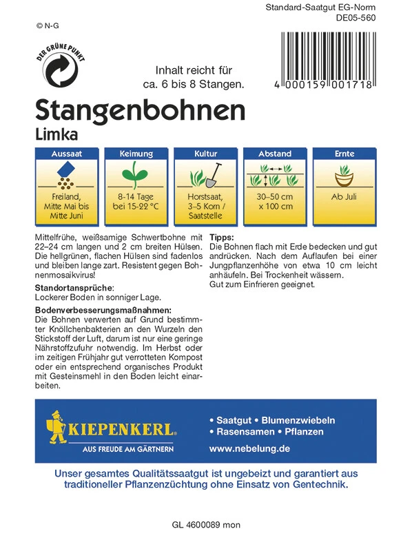Kiepenkerl Gemüsesamen Bohnensamen Stangenbohnen