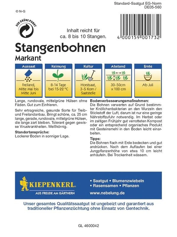 Kiepenkerl Gemüsesamen Bohnensamen Stangenbohnen
