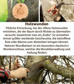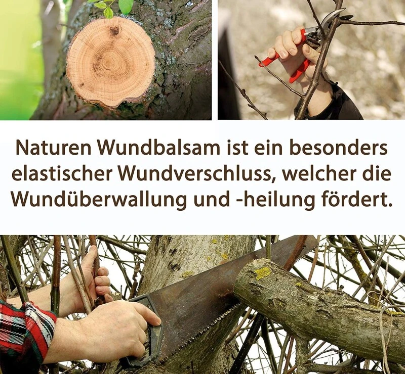Natürlicher, besonders elastischer Wundverschluss zur Anwendung an Zier- und Obstgehölzen.