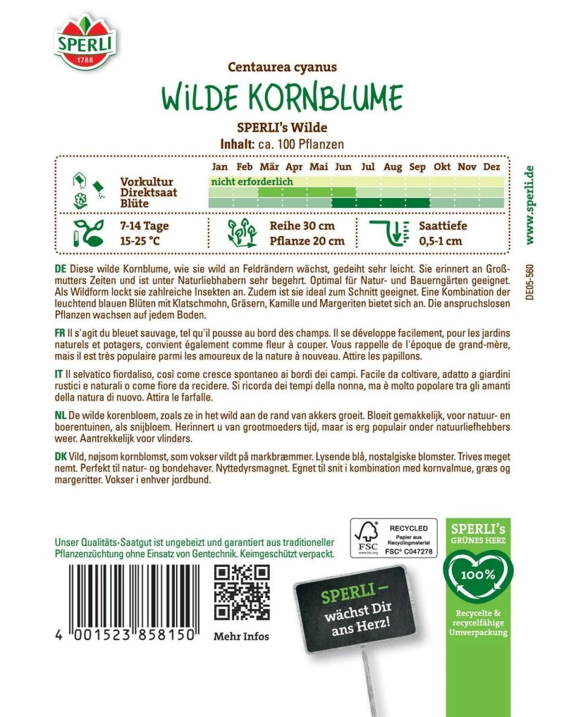 Auch zur Ackerbegrünung oder für Wildstaudenbeete verwendbar. Kornblumen sind gute Nektarblumen für Bienen und Schmetterlinge.