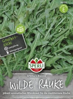 Die Wilde Rauke ‚SPERLI’s Rucola‘ ist ein mehrjähriges, italienisches Würzkraut. Die Blätter haben einen pikant nussigen Geschmack. Sie sind kleiner und geschmacksintensiver als jene der Gartenrauke. Der Anbau ist in Töpfen, auf der Fensterbank und im Gewächshaus oder im Freiland möglich. Für die Nutzung als Salat werden die jungen, grundständigen Blätter vor dem Austrieb des Stängels regelmäßig geerntet. Ältere Blätter nehmen an Schärfe zu und sind daher zum Würzen von Suppen, Ragout, Pesto, Pizza sowie Nudel- und Reisgerichten besonders geeignet. Übrigens: Auch die Blütenknospen, Blüten, Samen und Stiele der Wilden Rauke sind essbar.