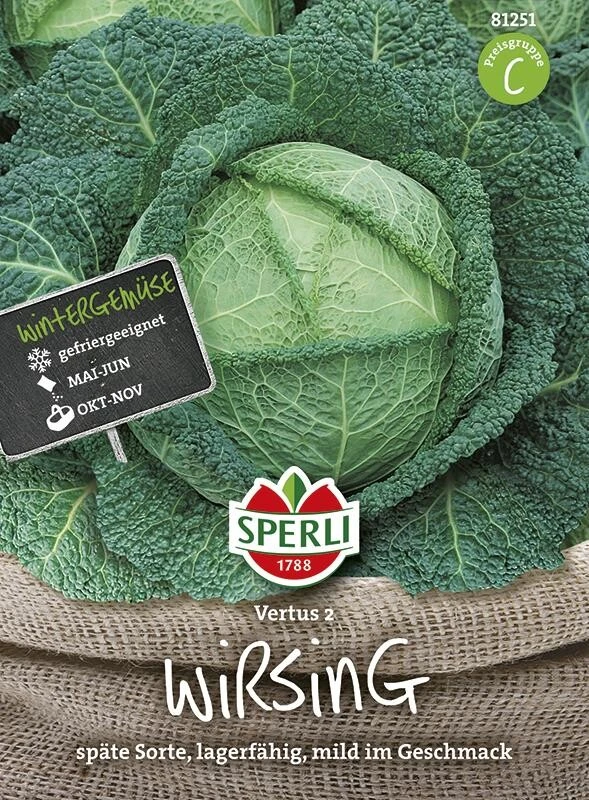 Ein ertragreicher Herbstwirsing wächst mit dem Wirsing ‚Vertus 2‘ in Deinem Garten! Er bringt schwere, plattrunde Köpfe hervor. Die Blätter haben eine typische graugrüne Färbung und die Umblätter sind gekraust und fühlen sich leicht wachsartig an. Dieser köstliche Wirsing zeichnet sich durch seinen milden Geschmack aus und kann von Oktober bis November geerntet werden. Im Anschluss kannst Du ihn zudem einfrieren, sodass Du auch über einen längeren Zeitraum das leckere Gemüse aus dem eigenen Garten genießen kannst.