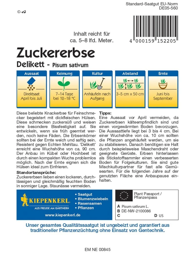 Kiepenkerl Gemüsesamen Erbsensamen Zuckererbsen